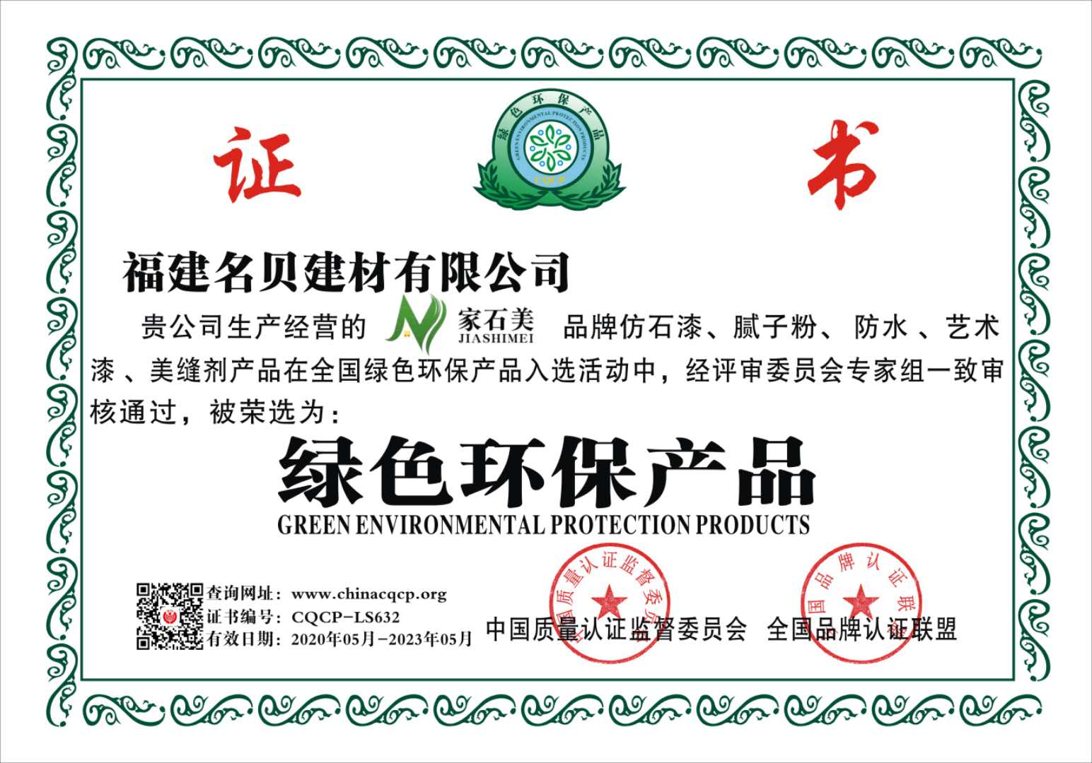 企業(yè)通過了質(zhì)量管理體系ISO9001:2000認(rèn)證及環(huán)境管理體系14001:2004認(rèn)證,堅(jiān)持持續(xù)改進(jìn),不斷提升公司的質(zhì)量管理水平。良好的產(chǎn)業(yè)文化環(huán)境和管理理念、運(yùn)行模式,不予余力地打造全球知名建筑環(huán)保涂料品牌,公司產(chǎn)品深受市場(chǎng)業(yè)主喜愛,獲得各界建材市場(chǎng)的“綠色通行牌”,被譽(yù)為國(guó)內(nèi)建材市場(chǎng)的綠色環(huán)保品牌。